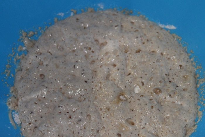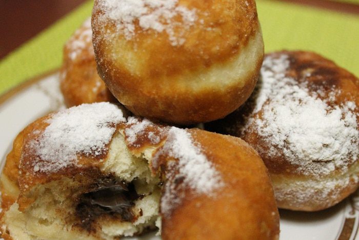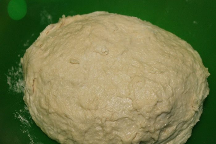 В подошедшую опару добавляем теплую воду, сахар, соль, ванильный сахар. Хорошо все перемешиваем, затем постепенно добавляем просеянную муку. Как только тесто станет похоже, как на оладьи, добавляем коньяк и 2 ст.л. растительного масла. Еще раз, хорошо все перемешиваем и добавляем оставшуюся муку. Как только тесто перестало липнуть к рукам, скатываем его в шар и кладем в чистую посуду, накрываем полотенцем и оставляем на 1 час.