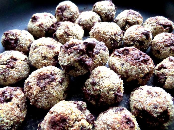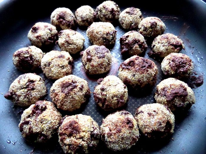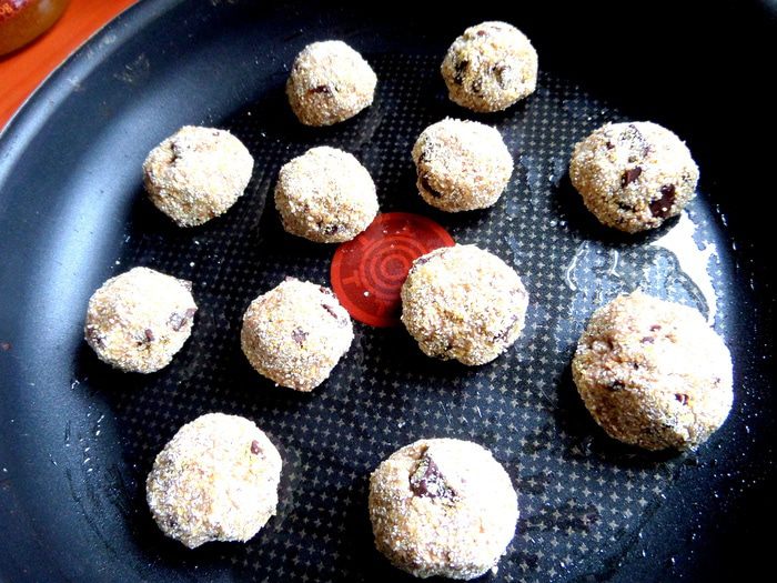 Обмакиваем со всех сторон комочек теста в крупе.