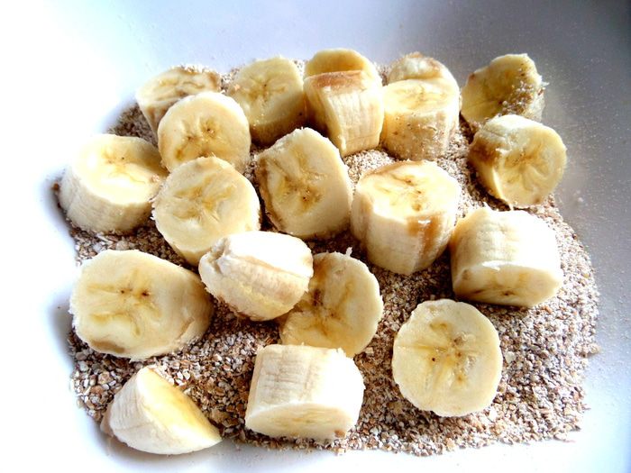 Покрошить бананы в крупу.