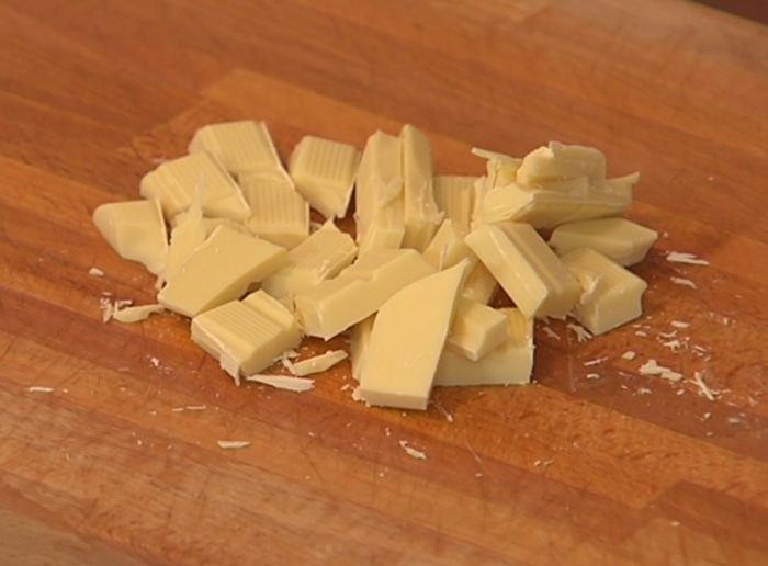 Добавить сливки, 60 г сливочного масла и растопить все на водяной бане.