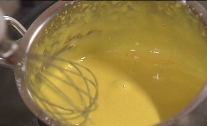 Яйца с сахаром взбивать блендером до полного растворения сахара — должна получиться пышная масса.