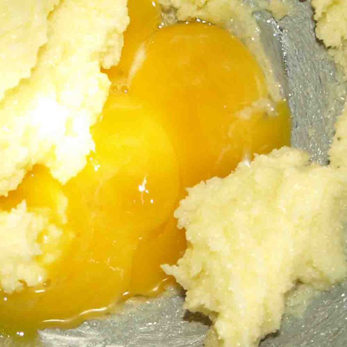 Добавить два желтка и немного муки (чтоб тесто не расслаивалось). Хорошо перемешать.