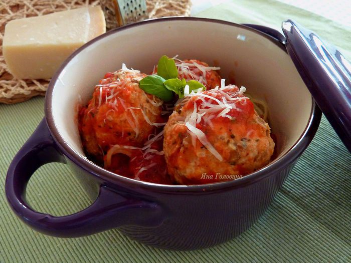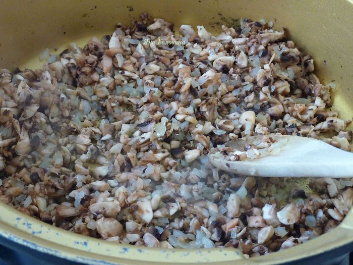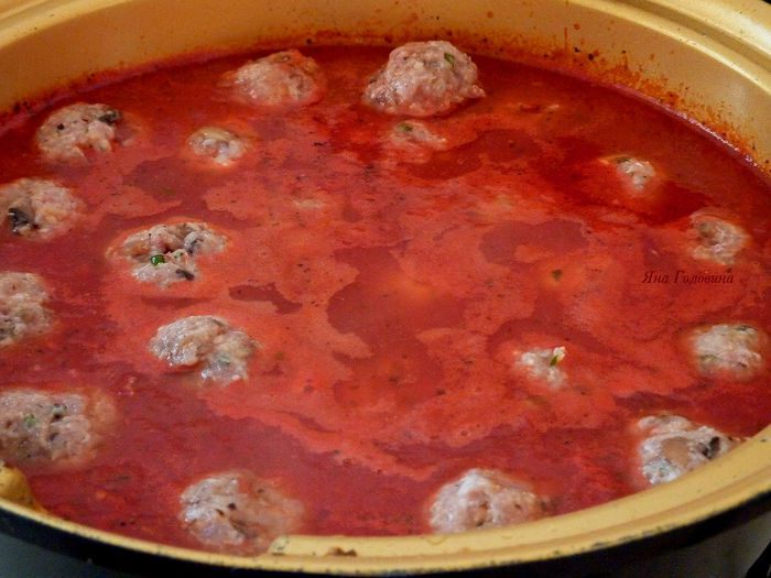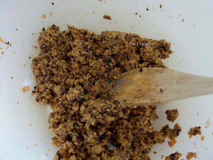 Тем временем перемешать фарш с грибной массой, добавить измельченный базилик , натертый пекорино , соль и белок. Перемешать до однородности и сформировать в шарики размером с мячик для пинг - понга .