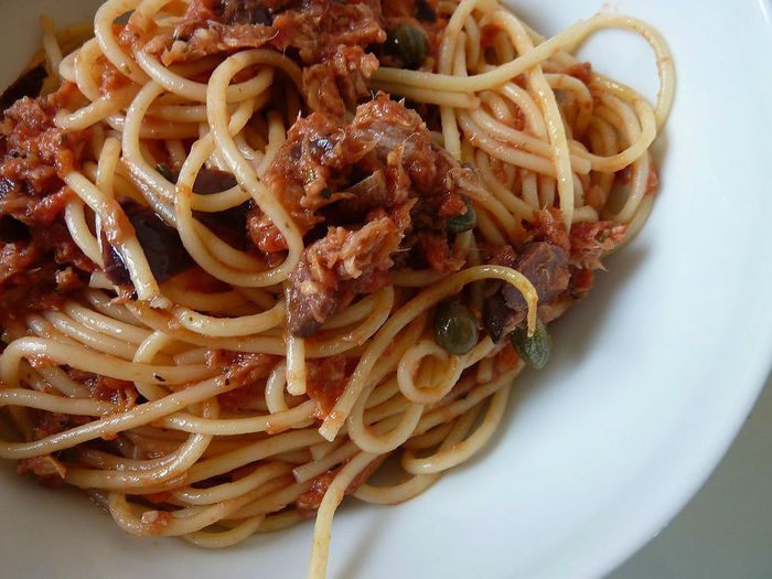 В большое кастрюле с подсоленной водой, отварить пасту в соответствие с инструкцией.