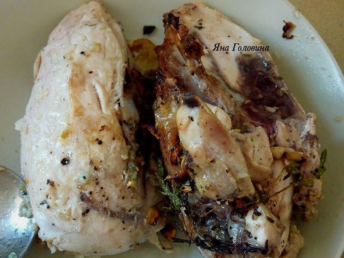 Курицу разрезать на 8 кусков . Чеснок почистить пока только 10 зубчиков , 5 зубчиков крупно порезать ( 5 оставить целыми ) . В большой миске перемешать курицу , 10 зубчиков чеснока , каперсы , маслины , тмин , розмарин и лимон . Полить всё 3 ст ложками оливкового масла , посолить и поперчить . Хорошо перемешать , накрыть и убрать в холодильник на ночь ( можно и на час , и даже только на 10 минут но чем дольше промаринуется, тем вкуснее ).