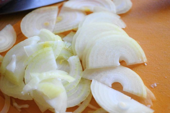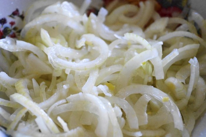 Лук нарезать полукольцами.