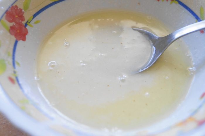 Подготовить глазурь: в сахарную пудру добавить лимонный сок и размешать так чтобы не было комочков.