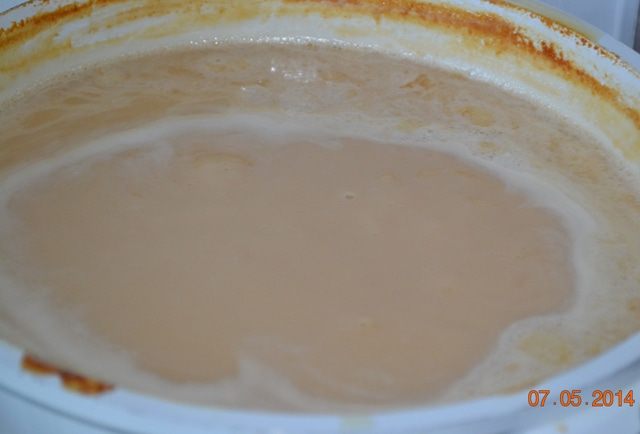Осторожно! Молоко начнет "шипеть" и поднимать пену. Возвращаем все на огонь и снова ждем когда закипит. С момента закипания молока засекаете время - 3 часа при слабом кипении.При кипении молоко будет немножко пенится, но с этим бороться не нужно. Со временем пена сама уйдет. Если огонь будет умеренно большим, то время приготовления сокращается, но сокращается и количество молока. Я варю при слабом огне 2,5 часа. Потом на последние 30 минут делаю огонь сильнее.