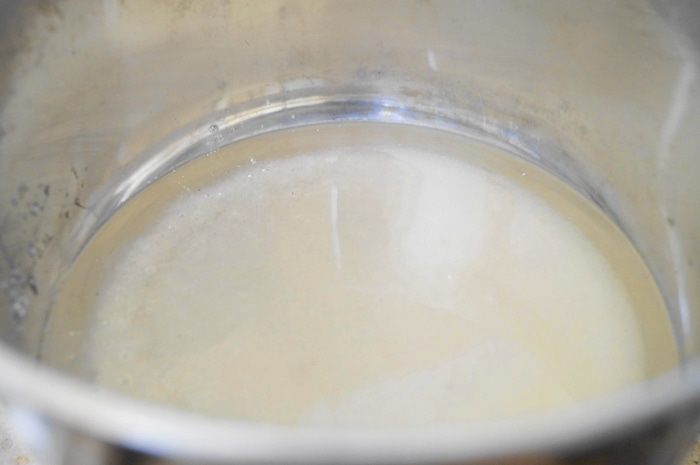 Для сиропа: в толстодонную кастрюлю налить воду и высыпать сахар, поставить на огонь, мешать до растворения сахара.