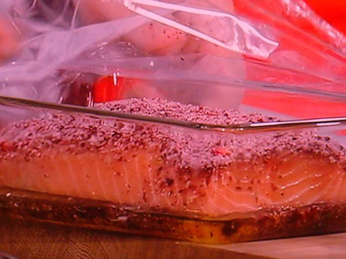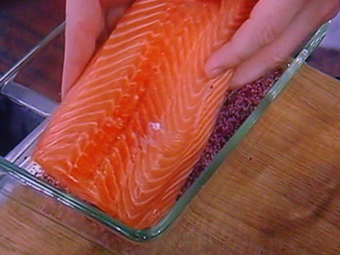 покрыть рыбу оставшейся смесью соли из каркада, накрыть пищевой плёнкой, утяжелить тарелкой или доской и поставить в холодильник на 24 часа. Перед употреблением тщательно снять маринад и нарезать рыбку пластинками или как вам будет угодно)) Приятного аппетита!