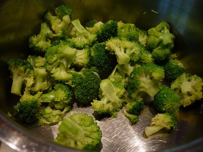Складываем пополам. Заворачиваем тесто в пленку и кладем в морозилку на 16 — 18 минут. Достаем из морозилки и повторяем тот же процесс, т.е. двойной тур. Сворачиваем сложенное тесто пополам. Снова кладем тесто в морозилку на 16 — 18 минут. Теперь готовим начинку. Бланшируем разобранную на соцветия брокколи в течение пары минут. Сливаем воду. Солим по вкусу. Цукини режем колечками, пока НЕ солим.