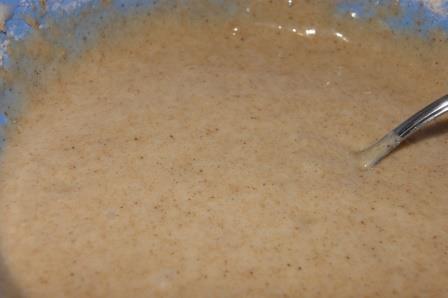 Добавить муку, разрыхлитель и корицу, тщательно перемешать.