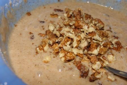 Добавить предварительно замоченный изюм и порубленные орехи.