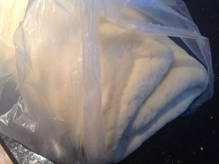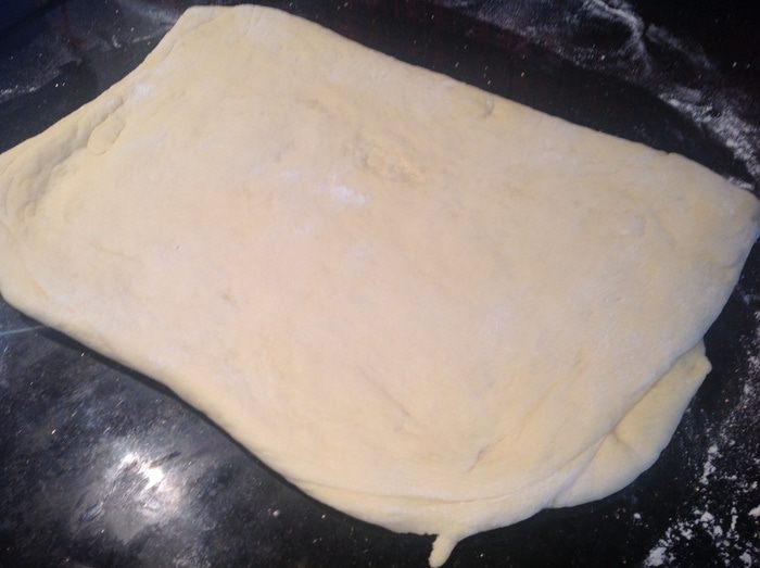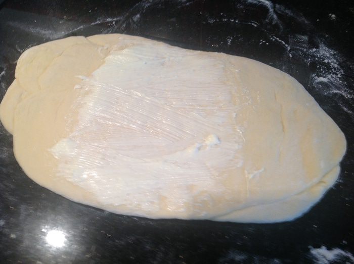Растворить дрожжи в теплом молоке. Добавить сахар, соль, яйца и 2 стакана муки. Перемешать до однородного состояния. Постепенно добавляя остальную муку, вымесить тесто в шар. Месить 5 минут, затем положить в миску, накрыть и оставить подниматься в теплом месте на 1 час.