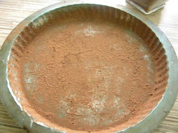 Форму смазываем сл.маслом и посыпаем какао-порошком. Духовку на 190 гр. разогреваем.