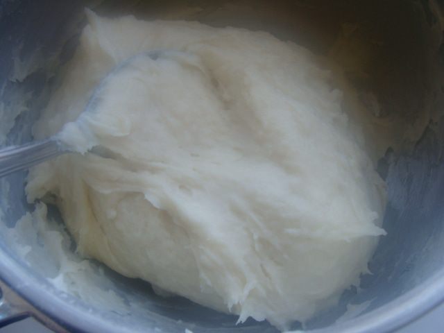 Тесто остудить, добавлять постепенно яйца по одному, каждый раз хорошо вымешивая тесто. Яиц может потребоваться больше или меньше. Все зависит от размера. У меня ушло 4 маленьких и 1 большое.