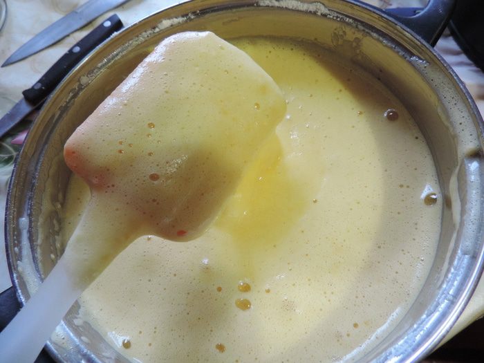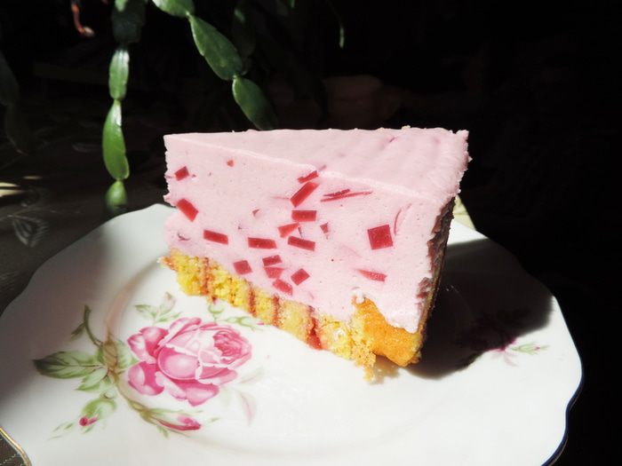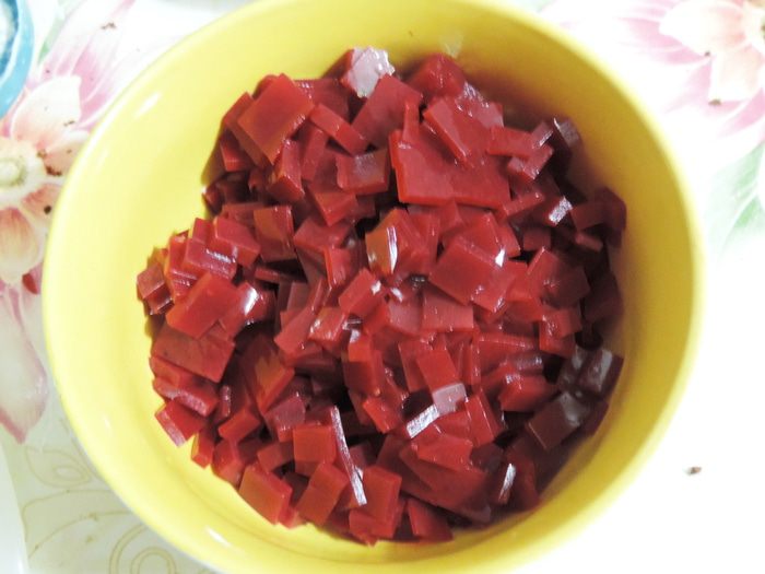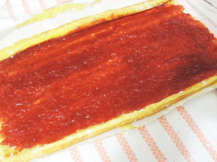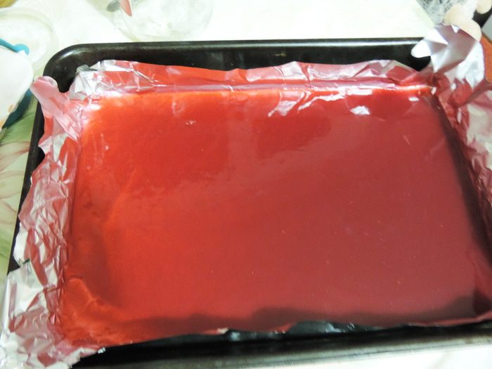 Малиновый жмых, который у нас остался от приготовления малинового пюре заливаем 200 мл кипятка, накрываем и оставляем настаиваться минимум на полчаса. Затем смешиваем процеженный через сито малиновый настой (в ингредиентах он указан как чай, по-другому не получилось))), малиновое пюре, сахар, агара (его набираем чайную ложечку без (!) верха) и доводим смесь до кипения на среднем огне при постоянном помешивании. Кипятим три минуты. Выливаем желе в форму (примерно 20*25см). Форму для удобства выстелить пищевой пленкой или фольгой. Оставляем застывать, желе застынет и при комнатной температуре, но для ускорения процесса, его можно вынести в холодное место.