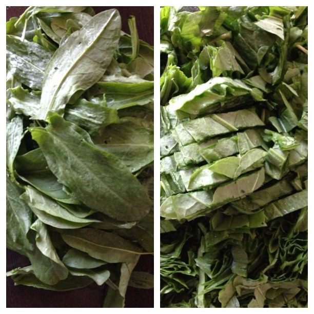 Щавель промыть, дать стечь воде и нарезать соломкой. Духовку разогреть до 180 градусов.