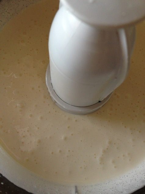 Взбить яйца с сахаром до устойчивой белой массы (лучше при помощи кухонной техники), добавить муку и коньяк, хорошенько перемешать.