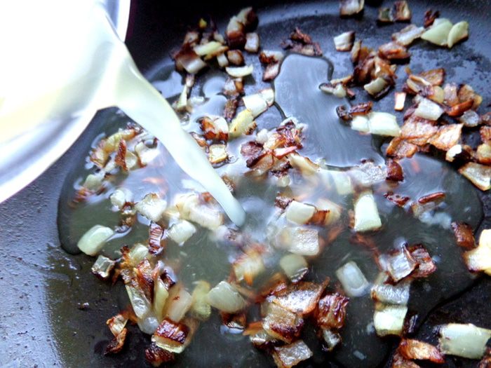 Влить бульон.