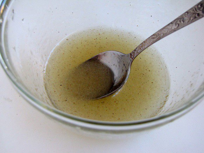 Для заправки смешать оливковое масло, винный уксус и мед. Посолить и поперчить по вкусу.