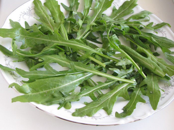 Салатную зелень ( по рецепту рекомендуется салат-эскариоль, салат-ромен или эндивий), я взяла рукколу, помыть, обсушить и выложить на блюдо.