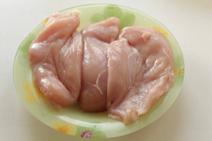 Куриные грудки хорошо моем под холодной проточной водой, просушиваем бумажным полотенцем,