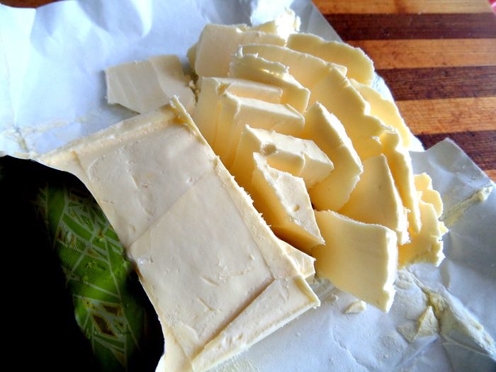 Масло нарезать кусочками...Можно взять солёное,тогда на верх солью не посыпать!