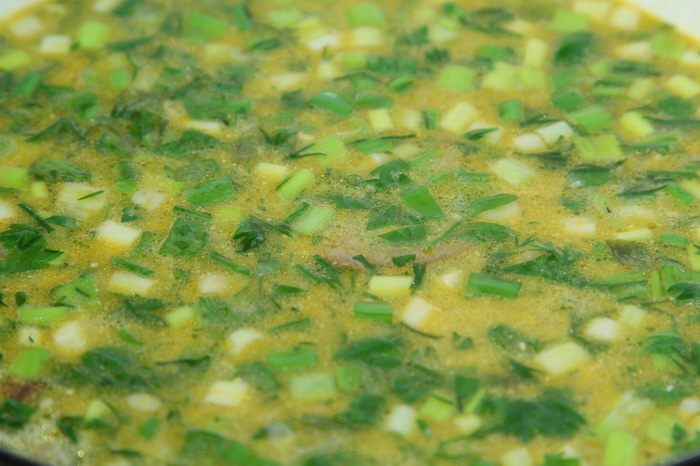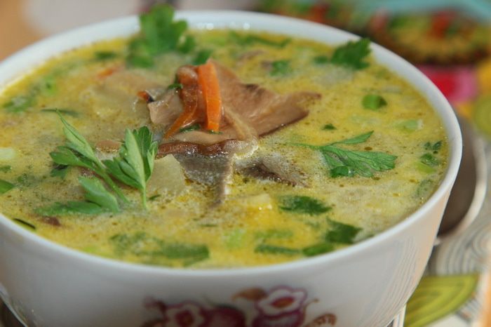 Проверяем картофель и если он сварился, добавляем наши грибы с овощами, доводим до кипения и выключаем. Суп готов. Лучше дать ему настояться хотя бы 1 час. Тогда аромат станет насыщеннее.