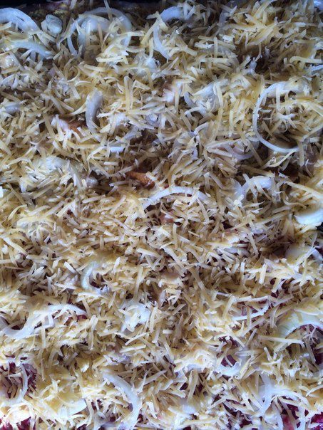 Лук режем кольцами, его можно немного промариновать (добавить немного уксуса и дать постоять)