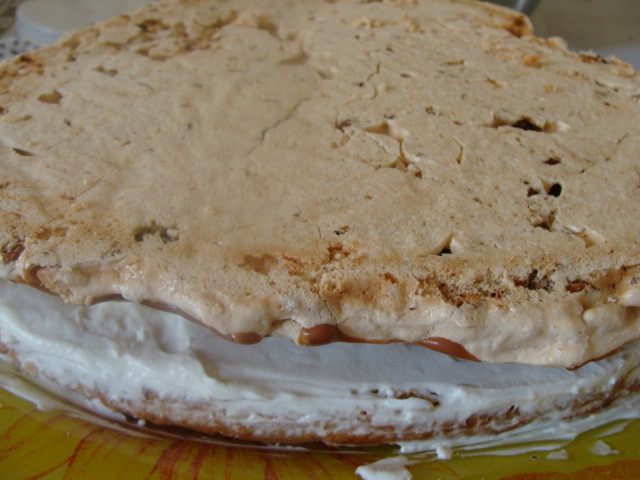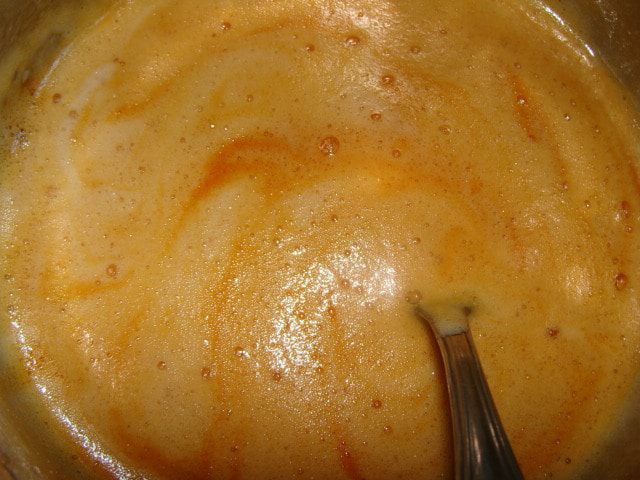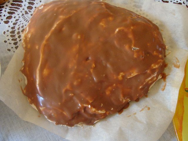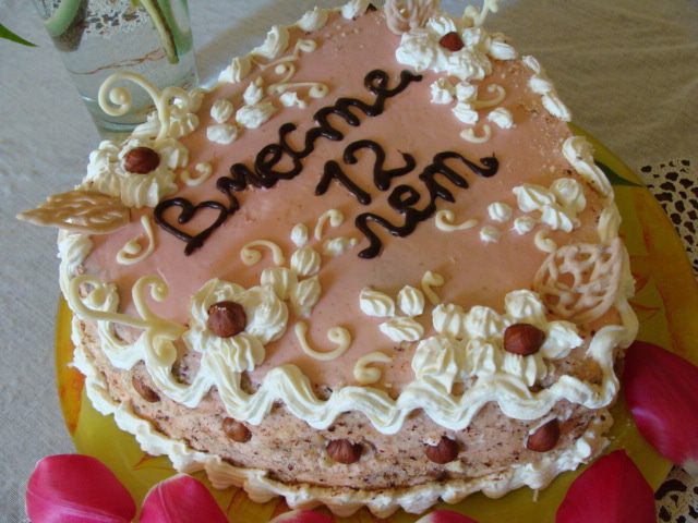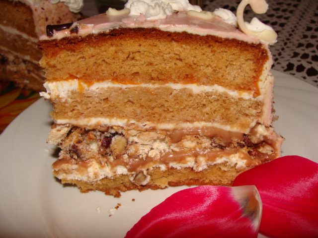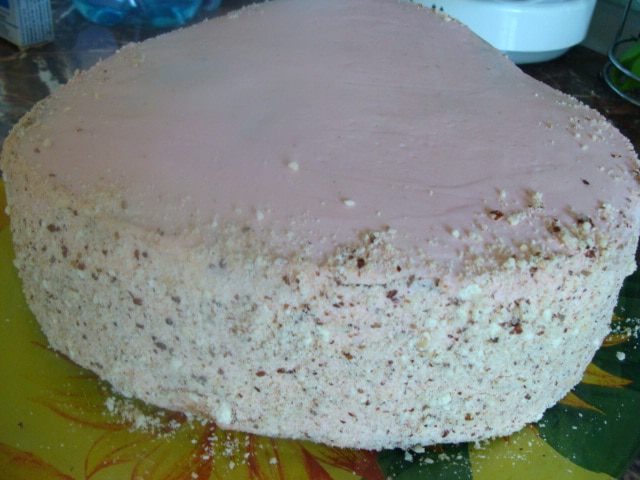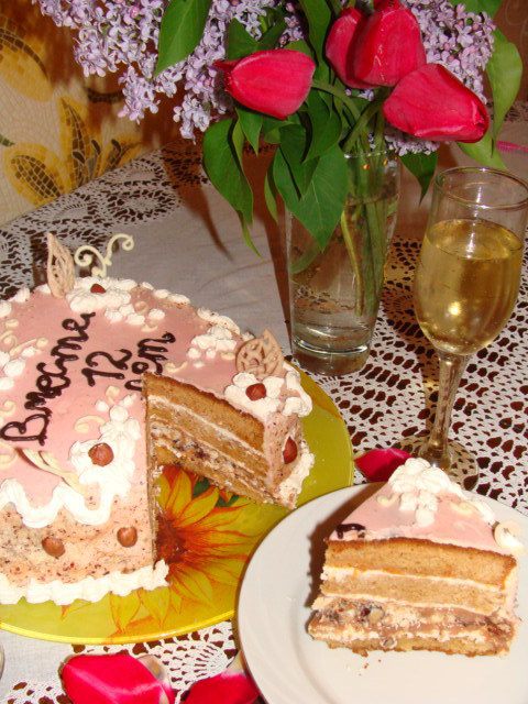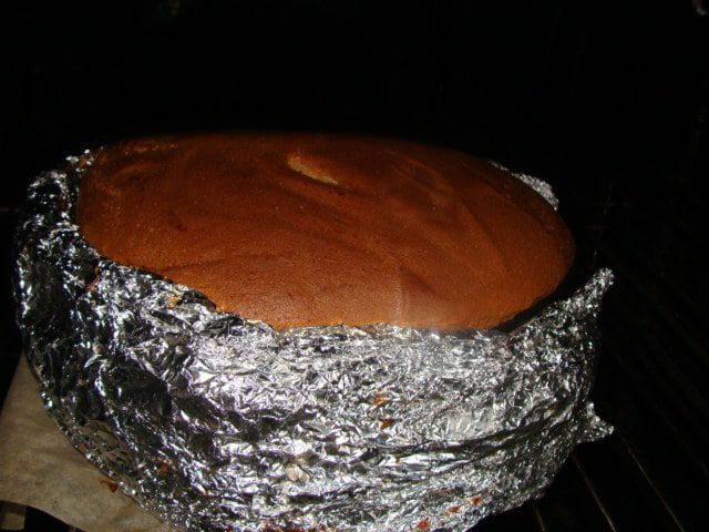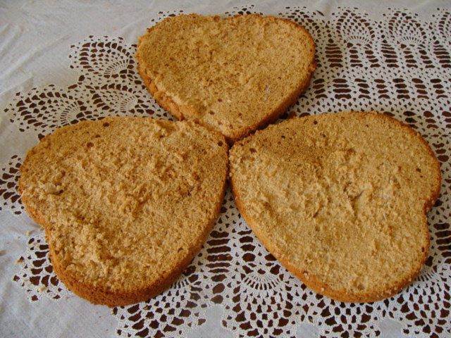 Духовка у меня газовая, на дне стоит сковорода с солью, затем противень, а потом решетка, на которую я ставлю форму с бисквитом. Так что вы сами ориентируйтесь на свою духовку, сколько времени вам понадобится. Если почувствуете запах горелого меда, то срочно вынимайте бисквит, он готов.