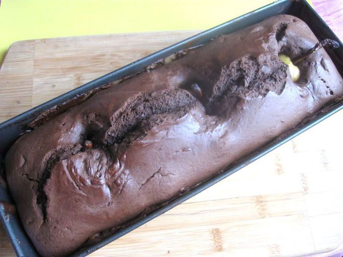 Заполнить форму тестом. Поставить в разогретую до 180 градусов духовку на 30 – 35 минут. Минут через 25 после начала выпечки проверить кекс с помощью тонкой деревянной палочки или зубочистки.