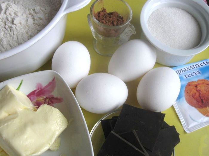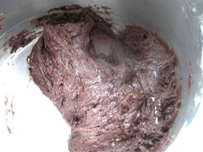 Муку просеять вместе с пекарским порошком и какао, добавить ликер, шоколадно – желтковую смесь.