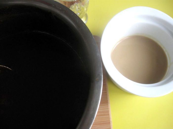 Добавить молоко. Перемешать.