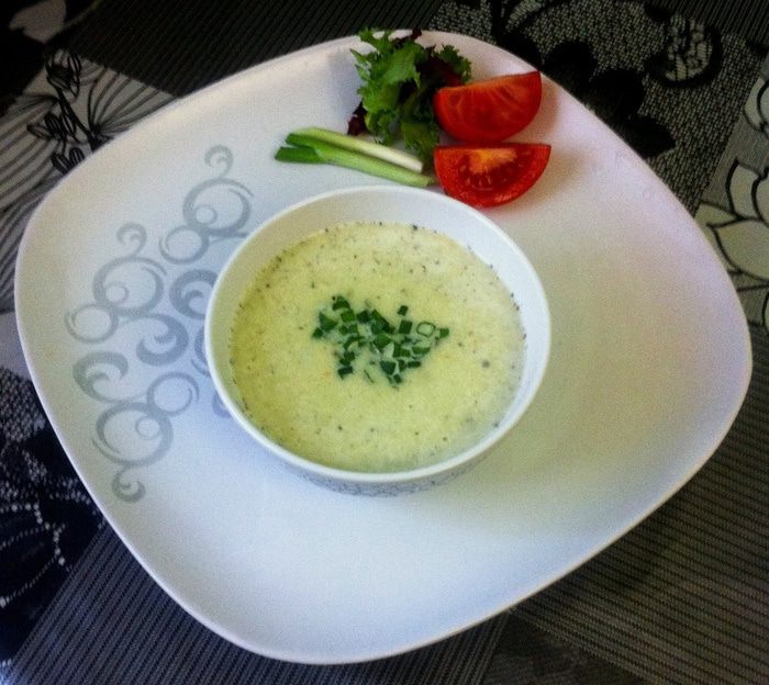 Подавать на стол можно как в теплом, так и в охлажденном состоянии, украсив мелко нарубленным зеленым луком.