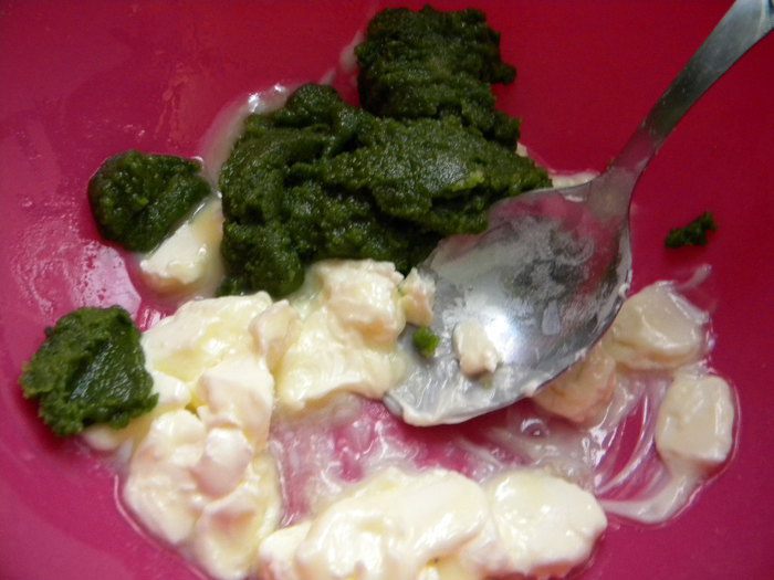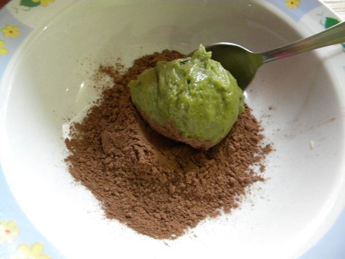 В мягкое масло кладем сахар мятный и хорошо перемешиваем.
