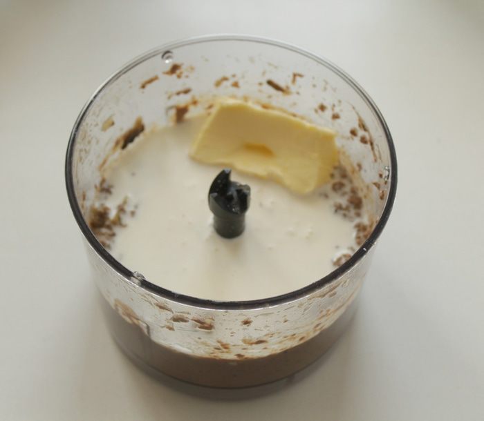 Дать немного остыть, вынуть лавровый лист и горошки душистого перца. Измельчить всё в блендере, добавив сливки и размягченное масло.