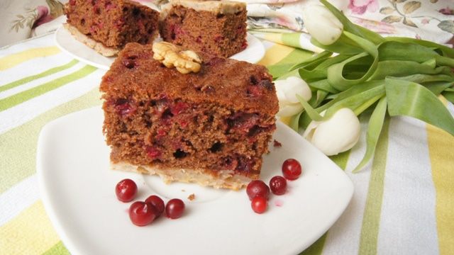 Очень нежный пирог с легкой кислинкой ягоды украсит ваше чаепитие. Бруснику можно заменить на вашу любимую ягоду.