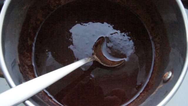 В кастрюле нагреть масло, какао и сахар. Смешать до однородности.