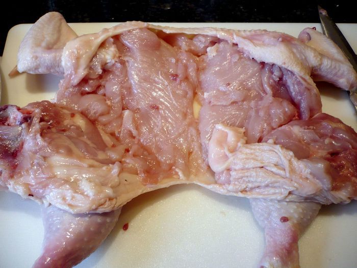 Форму для запекания смажем сливочным маслом. Лимон очистим от кожуры полностью, сняв и белую часть кожуры. Режем на кусочки, извлекаем косточки. Чеснок чистим, режем крупно. Выкладываем курочку в форму, смазываем ее оливковым маслом. По бокам выкладываем тимьян, розмарин, чеснок и лимон. Ставим курочку в духовку на 1 час. Через 20 минут смазываем курицу снова оливковым маслом (1 ст.л.). Ставим в духовку еще на 20 минут. Поливаем образовавшимся соусом, через десять минут снова поливаем соусом, ставим в духовку еще на 10 минут, достаем и снова поливаем соусом.