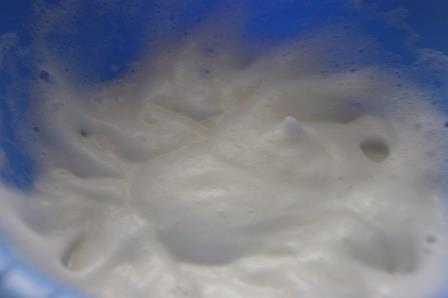 Белки взбить с солью в пышную пену, добавить сок лимона.