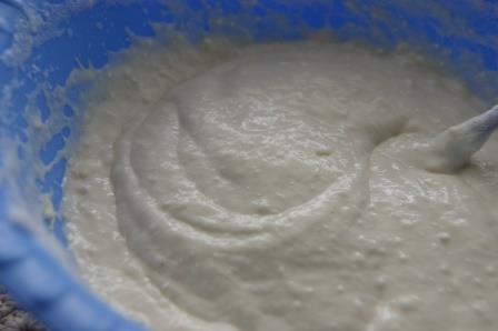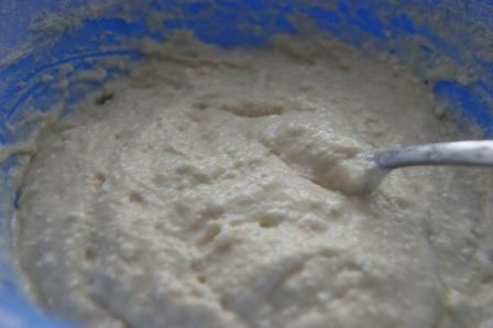 Всыпать муку с разрыхлителем, перемешать до однородности. Дать постоять минут 15.