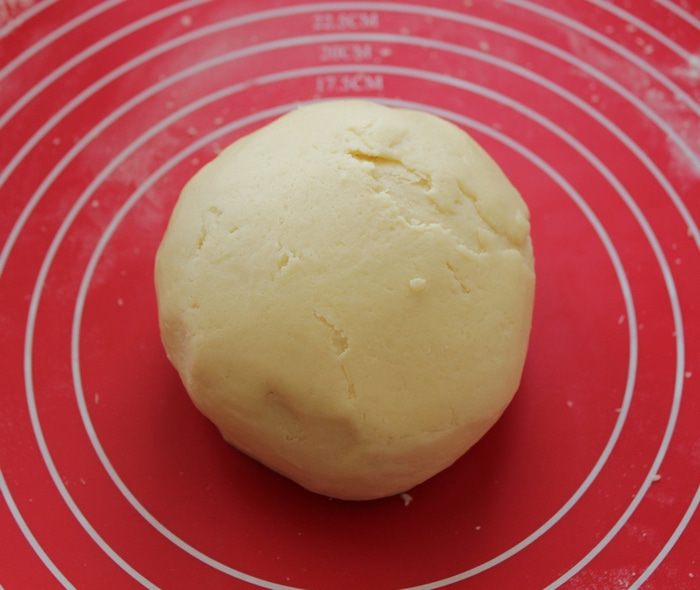 Добавляем муку,вымешиваем быстро. Формируем шар , заворачиваем в пищевую пленку и отправляем в холодильник на 30 минут.