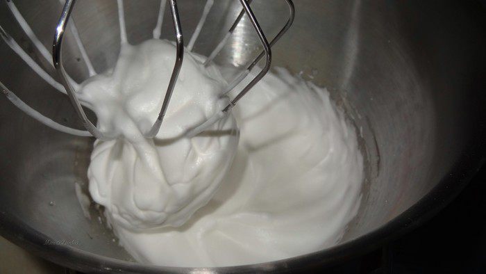 Взбить яичные белки со свежевыжатым лимонным соком до пиков, в конце добавить сахар.