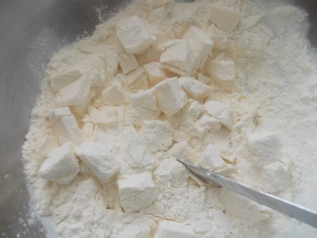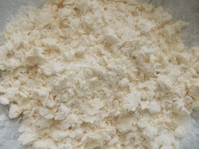 Превратить его вот в такую крошку, добавляя постепенно муку.