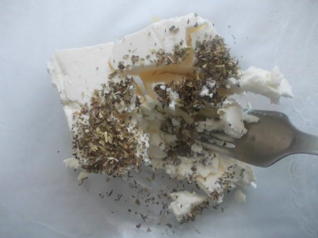 Фету размять вилкой и добавить прованские травы.