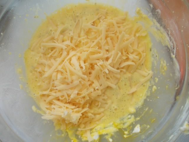Затем зальем все яйцами с сыром и травками, сверху я ещё присыпала сыром потертым.