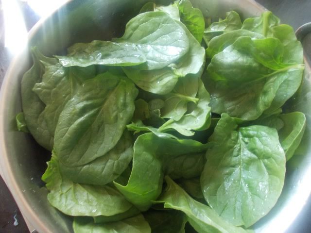Шпинат на сковороде с ложкой сливочного масла протушить пару минут.