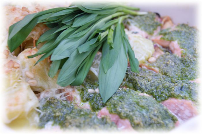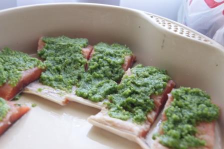 Как кстати пришелся рецепт песто с черемшой от Ярославы! Я как раз собиралась готовить рыбку, муж принес свежайшую черемшу, и тут он красивейший и вкуснейший рецепт песто с кетой очень гармонично получилось, поскольку кета не жирная как семга или форель