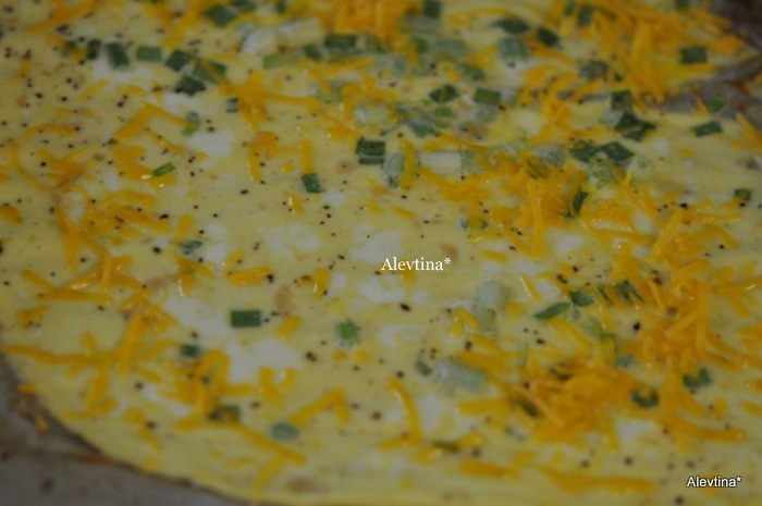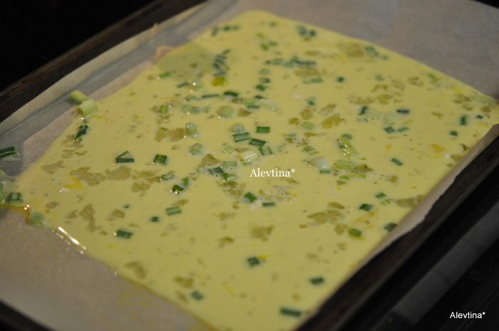 Вылить равномерно на противень и поставить в духовку на 10-12 мин.